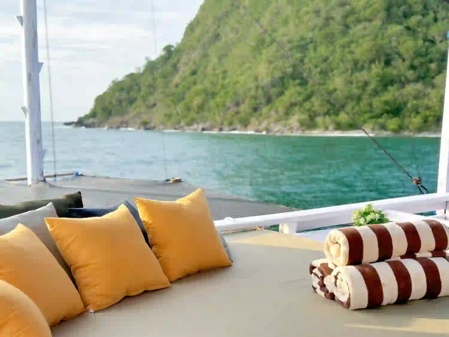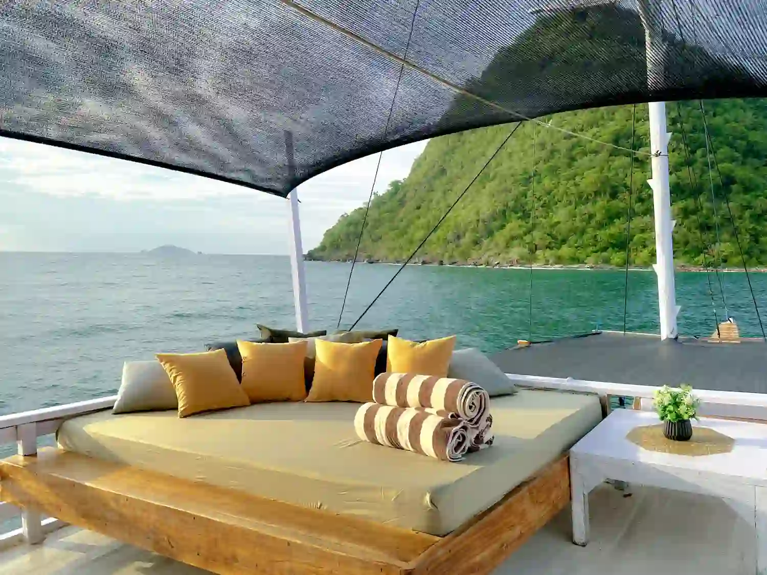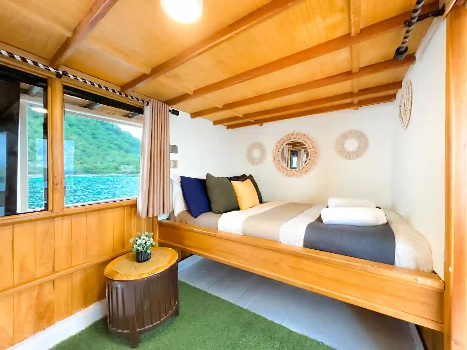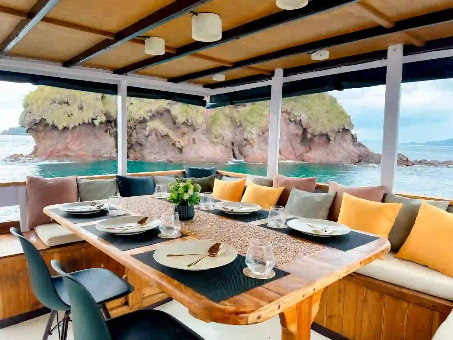 Kapal Santemako menawarkan atmosfer bersahabat dan homey yang cocok untuk perjalanan keluarga kecil, pasangan, maupun solo traveler. Tidak hanya itu, Anda juga akan dimanjakan dengan sajian makanan lezat khas lokal selama berlayar. Bayangkan menyantap makan siang dengan latar perbukitan hijau dan laut biru di tengah laut Flores—sensasi liburan yang hanya bisa Anda rasakan di sini!